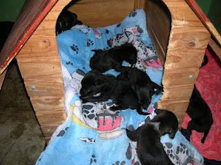 COMO PODE SER OBSERVADO, ELES ADORAM FICAR NA CASINHA, MAS UMA NÃO É SUFICIENTE PARA TANTOS FILHOTES. ACEITA-SE DOAÇÃO DE CASINHA PARA CÃES